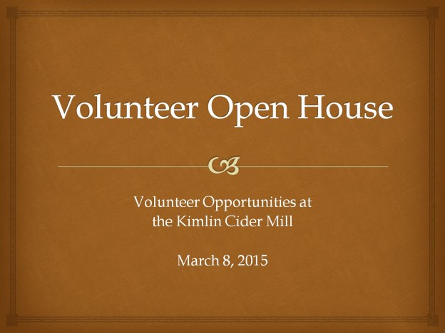 For those that missed our recent Volunteer Open House, we are sharing the presentation which provides a good summary of the volunteers and activities with Cider Mill Friends.