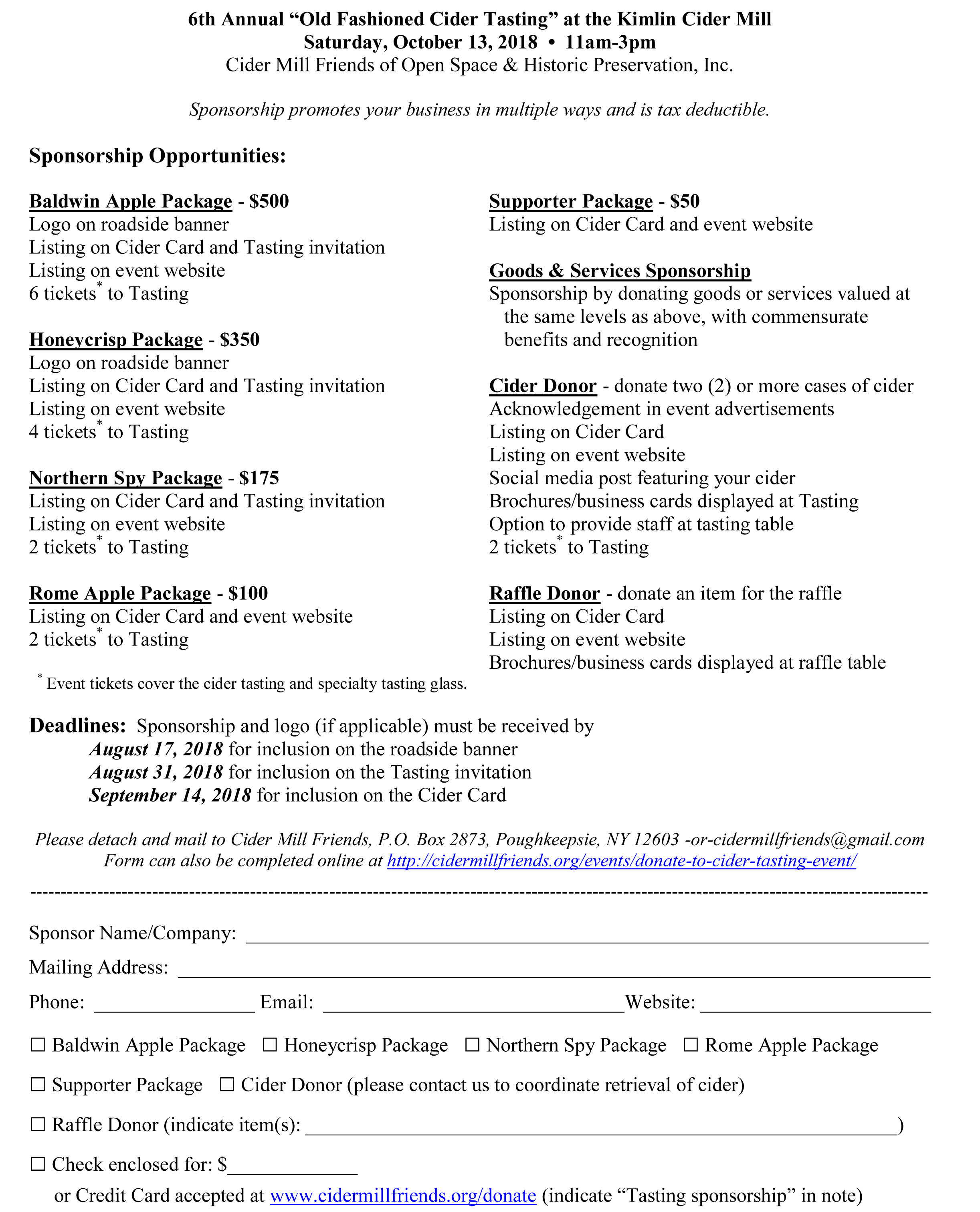 We invite you to join us as a sponsor of this event which is our major fundraiser. Event sponsorship is a wonderful way to advertise your business and support the preservation of the Mill. We offer extensive promotion of sponsors, fully described here and below. The roadside banner on Cedar Avenue advertises the event to nearly 2,500 cars per day; invitations are mailed to 750 supporters; emails go to 450 subscribers; the cider card is handed to our hundreds of guests; and the event and sponsors are shared through our website and Facebook page with 500 followers.
