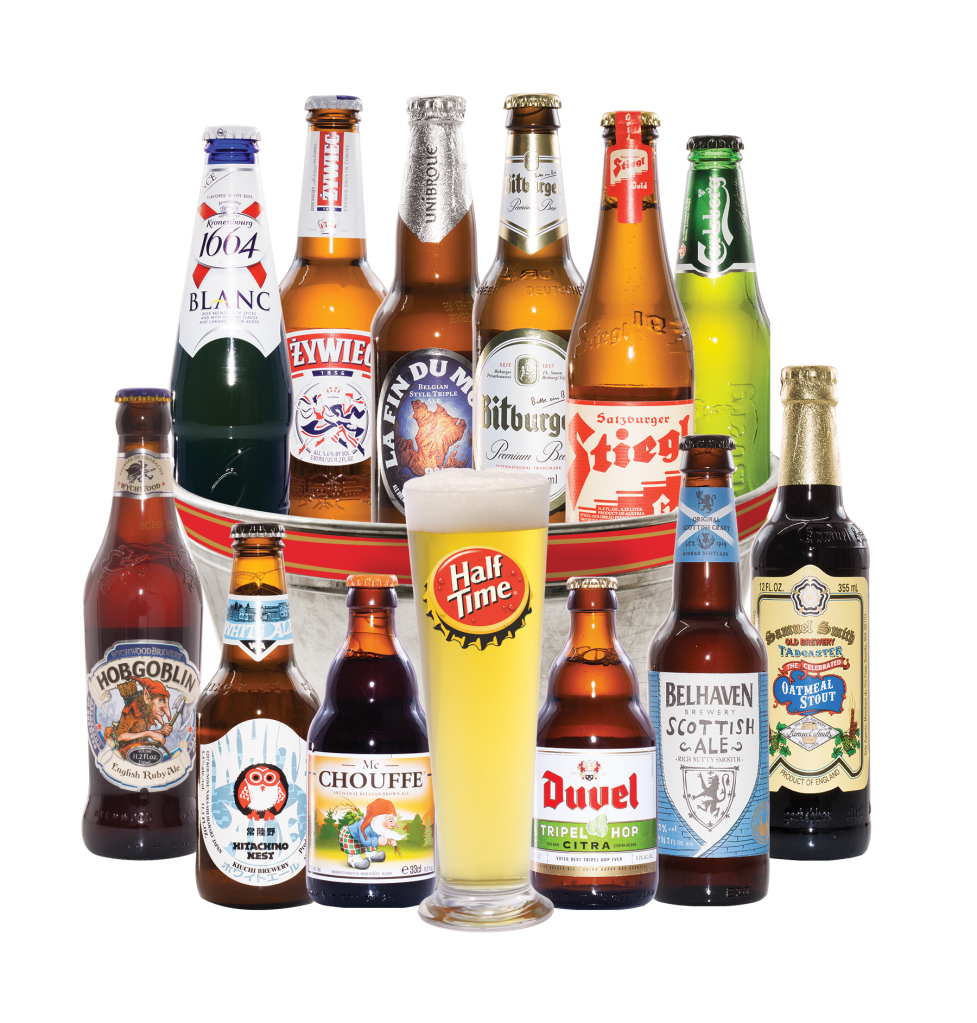 Half Time Beverage Around the World Beer Gift Basket: Beer has been around since the beginning of civilization and has been interpreted differently in every region across the globe. The Around the World gift basket is the perfect way to experience beer from the top brewers in the world without ever leaving your home. Want to try a classic German wheat beer and compare it to an English bitter? Or maybe you want to see the difference between a classic Belgian tripel and a Japanese white ale. Either way, this basket has something for every beer lover.