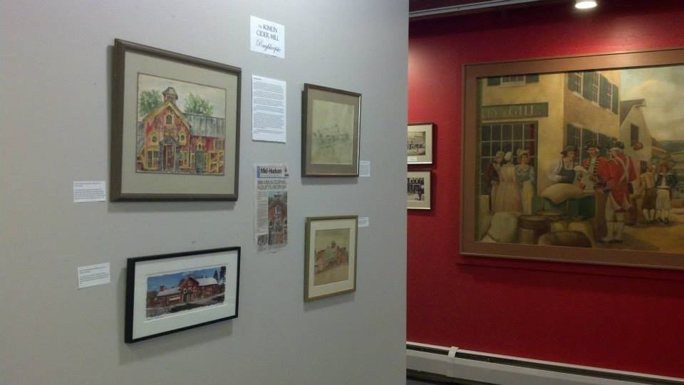 The exhibit “Dutchess Treasures” at the Mid-Hudson Heritage Center (317 Main Street, Poughkeepsie, NY) featured historic sites from around the county. Artwork of the Kimlin Cider Mill, created at various years, was included in the exhibit. The exhibit ran until October 31, 2013.