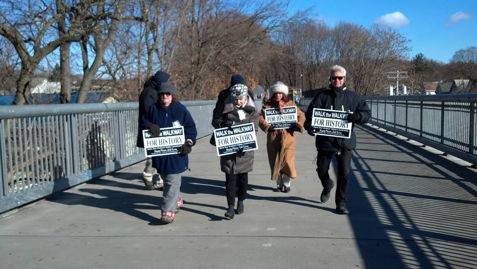 Cider Mill Friends joined Friends of Jackson House for the “Walk for History” across the Walkway Over The Hudson. The walk’s goal was to highlight the historic resources of the area. It was a small but passionate group of people. We had a poster up explaining our successful “path to preservation,” which is something the Friends of Jackson House are looking to do for the Jackson House in Fishkill which is threatened with demolition. Unfortunately the Village of Fishkill does not have a historic commission like the Town of Poughkeepsie, even though they have a historic district.