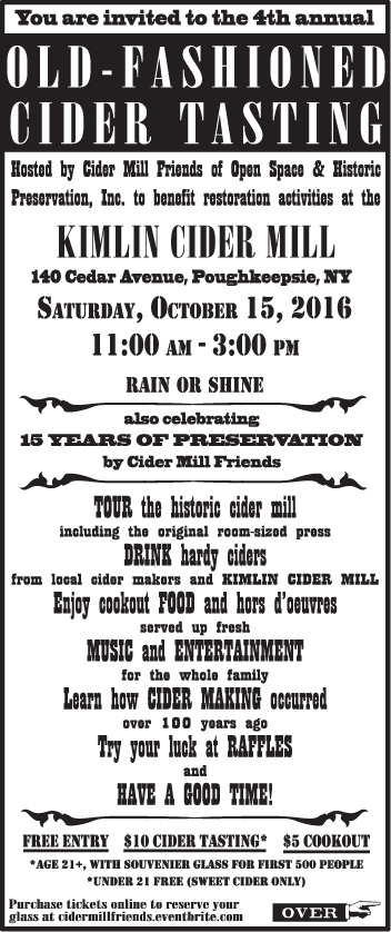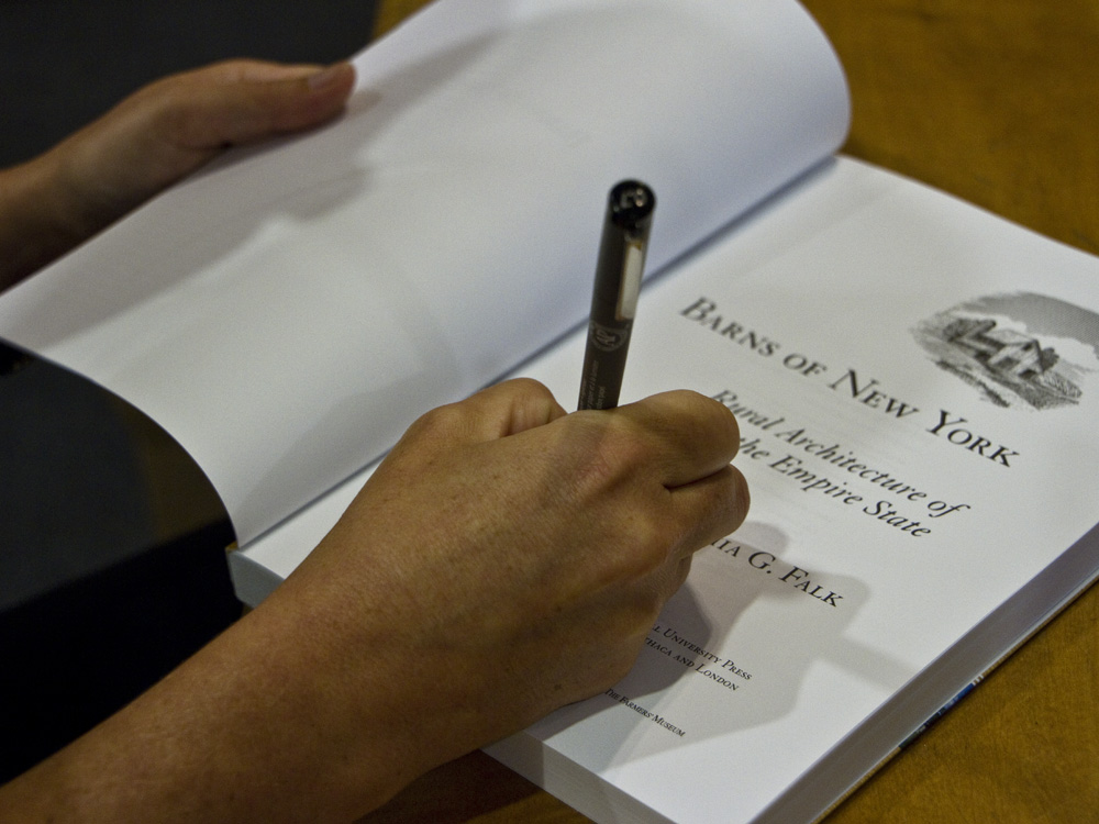 We invited Cynthia Falk, author of “Barns of New York: Rural Architecture of the Empire State,” a book which features the Kimlin Cider Mill, for a presentation, discussion, and book signing at the Mid-Hudson Heritage Center, 317 Main Street, Poughkeepsie, NY 12601. The event was free and open to the public and light refreshments were provided. The purchase of books benefited the restoration of the Kimlin Cider Mill.