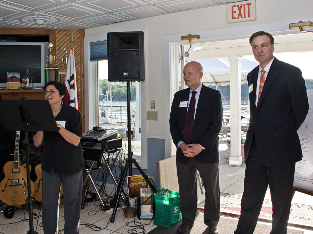 Our 2012 Annual Benefit Honoring Senator Steve Saland occurred Friday, May 18 from 5-8pm and was graciously hosted by club member Rob Rolison at the historic New Hamburg Yacht Club. We were thrilled to honor Senator Steve Saland, long-time supporter and nearby neighbor of the Kimlin Cider Mill. We were also thrilled to have Jay Dilorenzo, President of the Preservation League of New York State, join us to present the Senator’s tribute. For the special evening we were pleased to welcome the Deane Machine Trio (a group of talented swing jazz musicians), one of our local caterers, select silent auction items generously contributed by our local businesses and artists, and all of the wonderful company to honor our Senator and kick off the summer season.