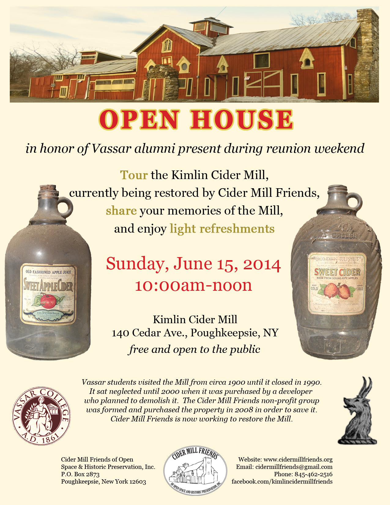 This open house is aimed towards the Vassar College Alumni that will be present for Reunion Weekend, but we welcome everyone to attend. See the flyer below for more information (click on the flyer to enlarge).