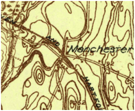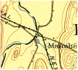 The original railroad line through Manchester was built in 1891 and opened for traffic in 1892. It was a single track line with a number of sharp curves. The Central New England Railway upgraded the line about 1910/1911 when they double tracked the line and straightened the curves. In the Manchester area, the straightening moved the line slightly to the west, which opened up the old right-of-way to be sold and redeveloped.