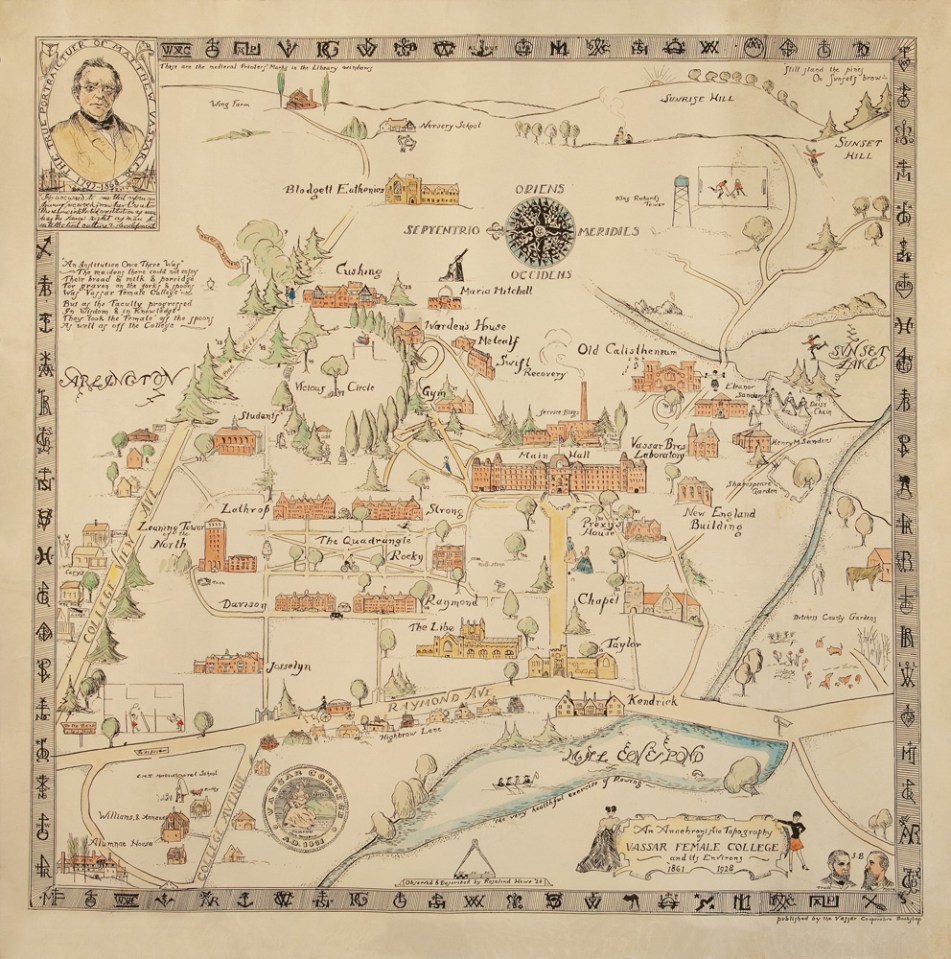 Historic_1928_ONL2246 ← Previous Next → 1928 map of Vassar College. The sign along Raymond Avenue on the bottom right says “To Kimlin”.