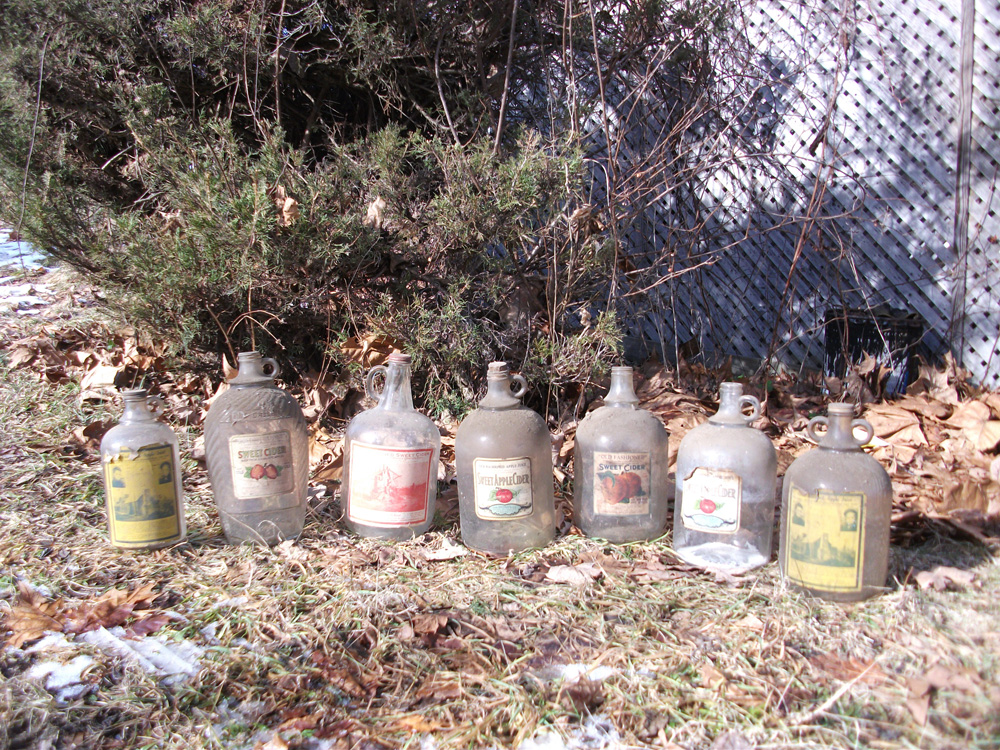 Jugs with labels.
